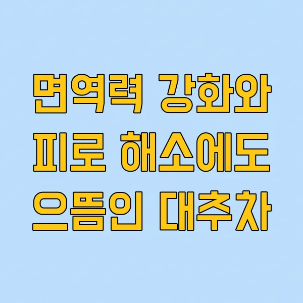 요즘처럼 바이러스가 기승을 부릴 때는 면역력 관리 가 정말 중요하잖아요. 대추차에는 비타민 C 와 다양한 미네랄 이 풍부해서 꾸준히 마시면 우리 몸의 면역 체계를 튼튼하게 만드는 데 도움을 줄 수 있대요. 실제로 제 주변에도 감기를 달고 사는 친구가 있었는데, 대추차를 꾸준히 마시고 나서부터는 확실히 잔병치레가 줄었다고 하더라고요. 👍