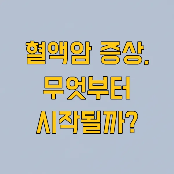 혈액암은 초기에 어떤 증상으로 나타날까요? 우리 몸의 신호를 주의 깊게 살피고, 조금이라도 이상하다면 꼭 전문가와 상담하는 것이 중요해요. 이 글에서 혈액암의 주요 증상들을 알아보고, 건강한 일상을 지키는 데 도움을 받으세요!